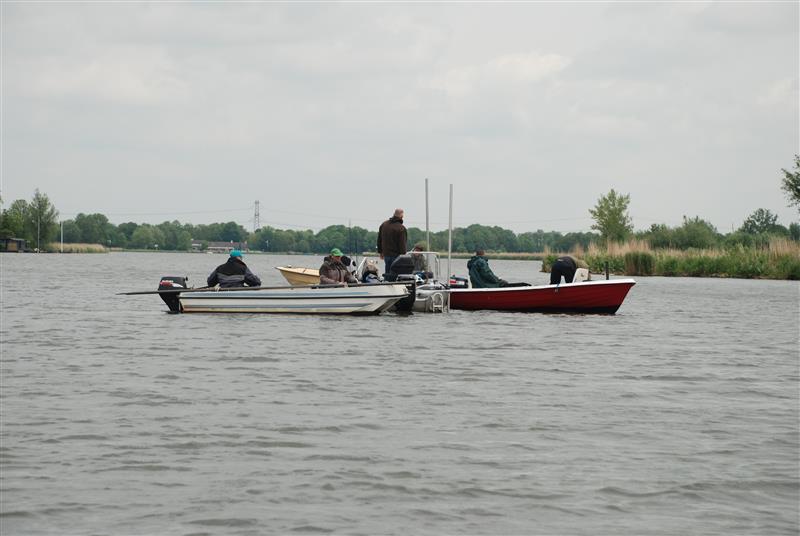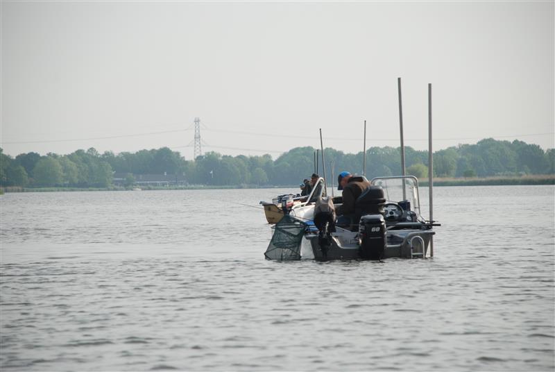 De winnaar Jaap Kwakernaat wist in de 4 uur durende wedstrijd ruim 9 kilo vis te vangen. Zijn vaste vismaat Jan Wols, de man die 1 meter naast hem in de boot zit (zie foto 2). Wist geen vis in zijn net te krijgen. Zo ziet u maar hoe mysterieus het vissen soms kan verlopen.